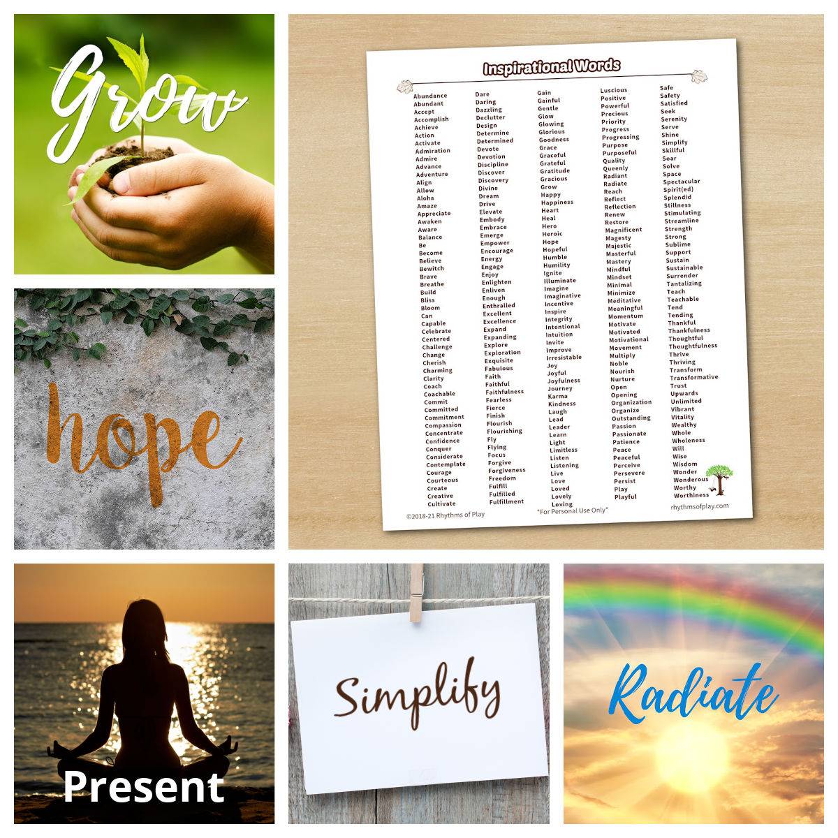Once you’ve chosen your word, write it somewhere visible – on your calendar, journal, vision board, or screensaver. Let it be a daily reminder that guides your actions and mindset. As a reminder, those of you with prior access or who are members of the Rhythms of PLAY CLUB can find the printable list of inspirational words in your product dashboard, in the Rhythms of Play Learning Center. Please log in to print your copy. If you're curious, my word for the year is "Radiate." I intend to radiate positivity, abundance, gratitude, love, and light! I'd love to hear your word for the year. Please reply to this email or share it with me on your favorite social media channel. Wishing you a year of inspiration, growth, and joyful moments. Blessings to you and yours in the New Year,